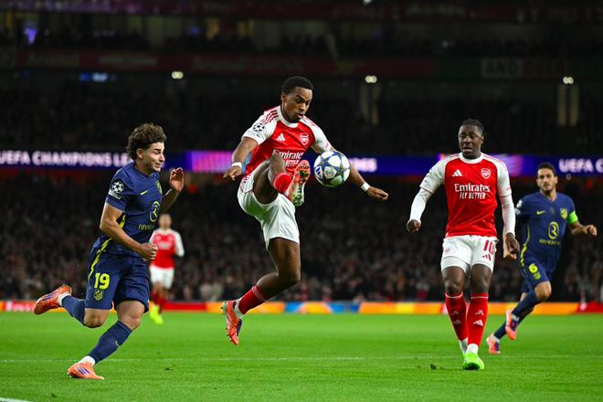 北京时间10月22日凌晨,新赛季欧冠联赛进入第三轮。英超与西甲豪门的对决在阿森纳与马德里竞技之间展开。上周联赛中,阿森纳1-0击败富勒姆。在赢得伦敦德比的同时,他们开启了各项赛事5连胜,期间只丢了1球。英超层面,枪手以13.1亿的总身价继续领跑。马德里竞技已经摆脱了赛季初的低迷。上周主场1-0击败奥萨苏纳后,马竞近5场各项赛事4胜1平。不过,由于此前失分过多,马竞目前在西甲积分榜上落后皇马8分。本赛季欧冠,阿森纳虽然前两轮保持全胜,但也打进4球,一球不失。马竞输球后首轮2-3不敌利物浦,次轮5-0击败法兰克福。比赛开场不到4分钟,阿森纳就制造了威胁。埃兹的射门击中防守球员并形成抛物线。球传给奥布拉克,击中立柱和横梁的连接处。赖斯跟进跟进,错失良机。两队的攻防转换相当快。第13分钟,阿森纳在马竞禁区前连续短传,斯凯利斜射相当偏出。经过10分钟的相对沉默后,第25分钟,拉亚在角球区附近开火。西蒙尼抛出的界外球是第一次。阿尔瓦雷斯快速射门,皮球穿过球门,枪手逃脱。第35分钟,马竞在本方半场丢球。萨卡的传中恰到好处。马蒂内利出场得分。巡线员立即举旗。马蒂内利越位并且目标无效。上半场比赛,两队交替攻防,但比分是0-0。下半场开始不久,阿尔瓦雷斯在禁区外亮出了满月弯刀。球传给拉亚,击中横梁。第57分钟,阿森纳的定位球战术再次发挥威力。赖斯传球,加布里埃尔头球破门。枪手最终取得领先。西蒙尼只是做了换人调整,准备加强进攻。第64分钟,斯凯利长跑后送出助攻。马蒂内利控球并射入远角。枪手两球领先。第67分钟,阿森纳迅速扩大领先优势。埃兹在球门前奋力挣扎。停球后,乔克莱斯巧妙射门打破进球荒。第70分钟,赖斯开出角球,加布里埃尔领球,约克斯梅开二度。最终,在英超联赛与欧冠联赛的对决中,第二场西甲豪门,总身价13.1亿的阿森纳以4-0击败总身价6.2亿的马竞。欧冠开局取得3连胜,进8球,失0球。由于比国际米兰少进一球,所以只是暂时的——排名第二。